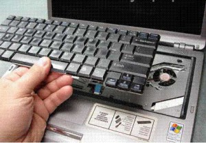 a) Voltea el portátil y abre el display, notaras que tanto el panel de poder como el teclado estarán sueltos, no lo quites aun.
